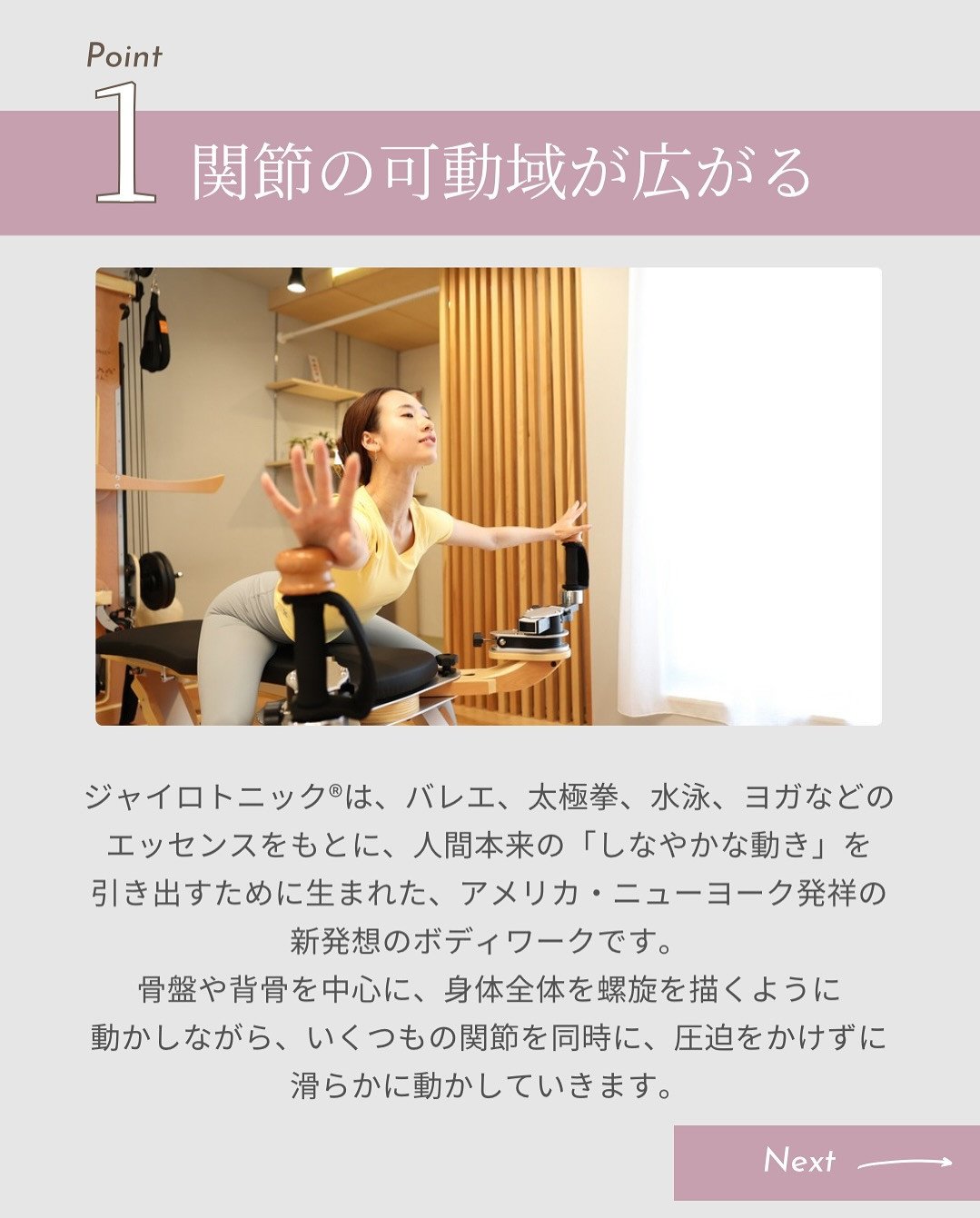 🌊🌊🌊ジャイロトニック®︎の特徴的な背骨を波うたせるような動き。マシンの力を借りることで、関節や内臓を圧迫せずに背骨を丸めた...
