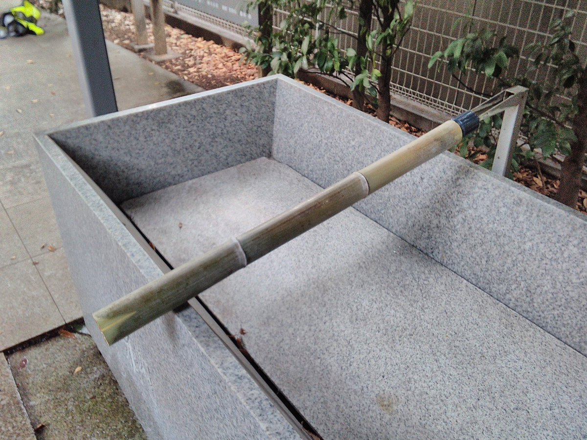 手水舎の竹を交換しました。今回は、耐久性重視ですね。