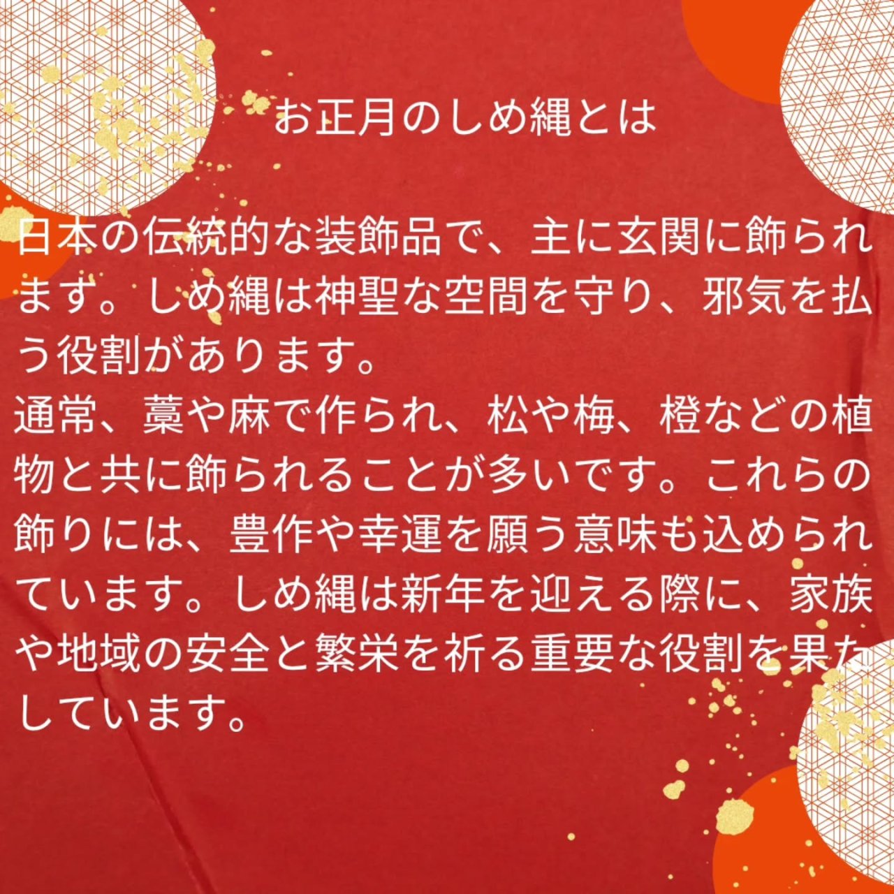 日本では昔から、新年を迎える前に門松・しめ飾り・鏡餅を正月飾りとして玄関先に飾るというのが一般的で、現在もその伝統が受け継がれています🎍