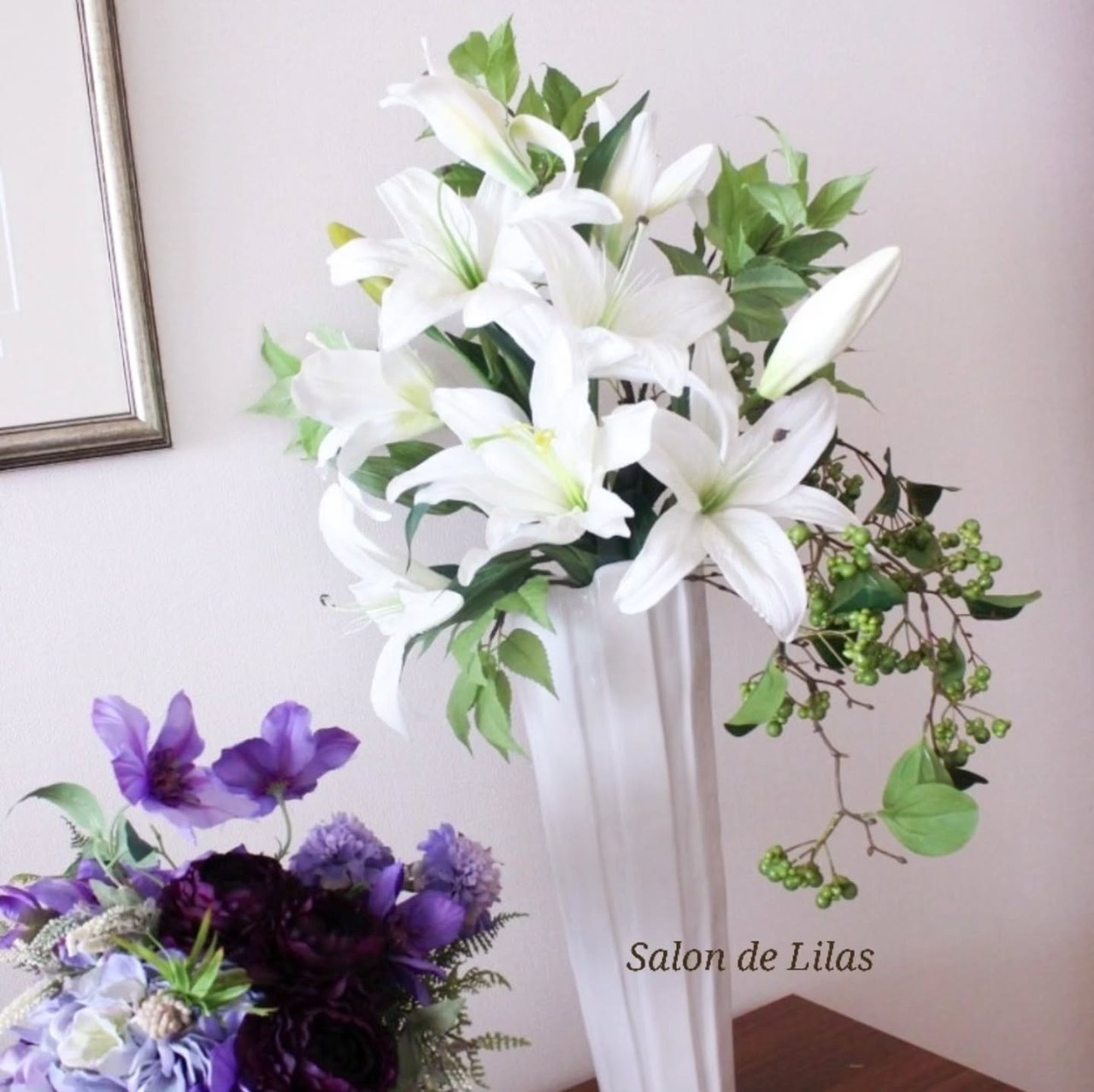 ナチュラルな雰囲気の作品、ゴージャスな百合を用いた作品、人気のホリゾンタルアレンジなどもお作り頂けます🌸