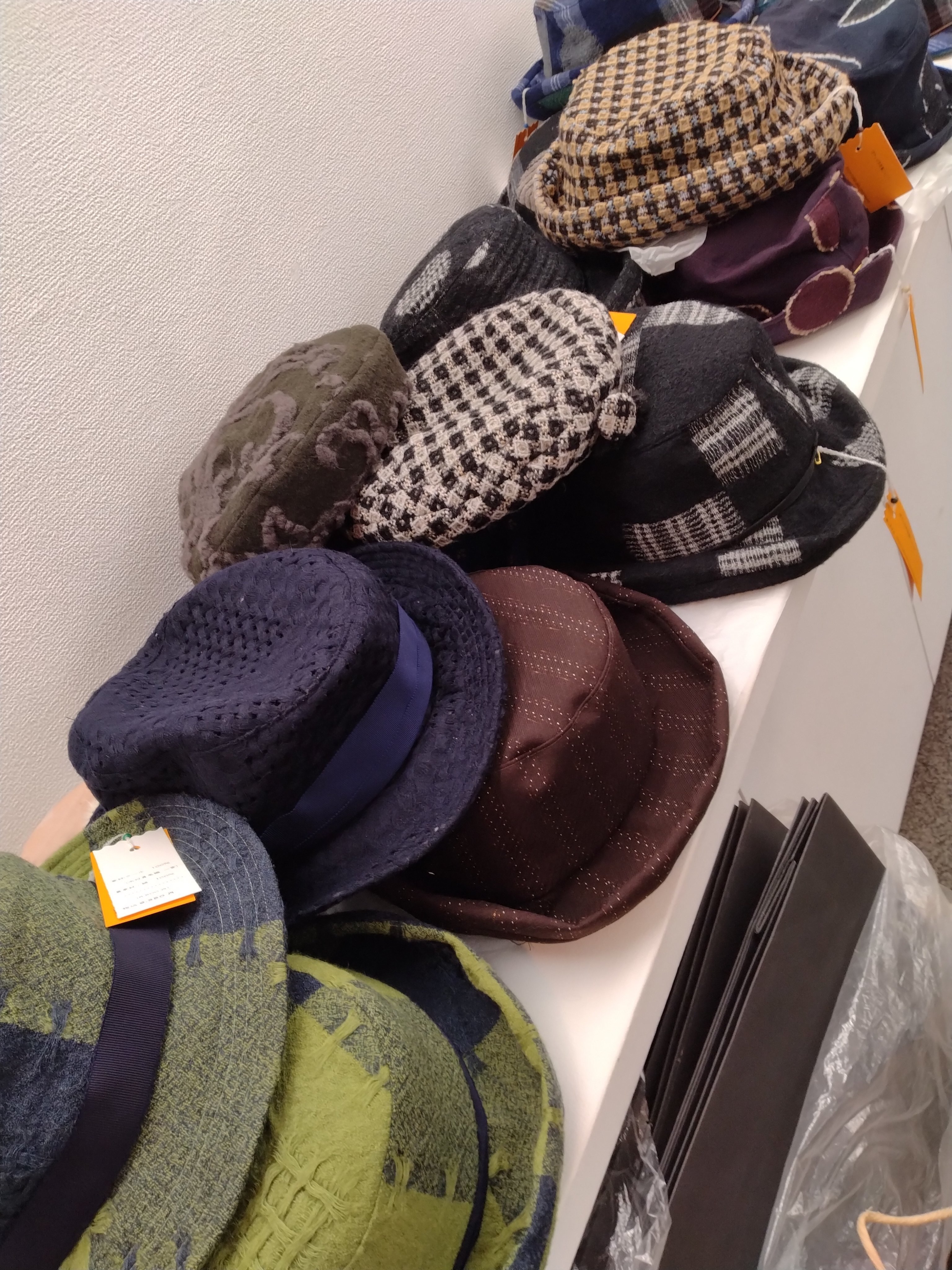 白を基調とした空間に柔らかな照明が広がり、服や帽子の質感、色彩、立体感の表情を豊かに映し出します。