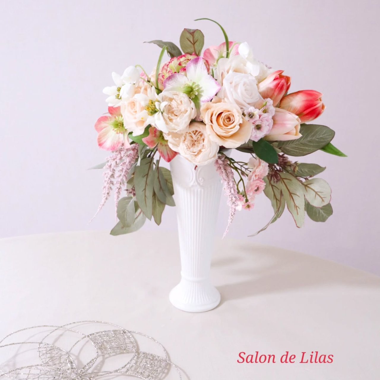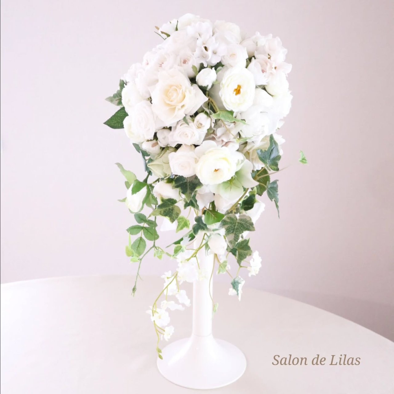 可愛いバスケットアレンジ、プリザーブドフラワーとアーティフィシャルフラワーを贅沢にふんだんに使用したクレッセントアレンジ、ウェディングのキャスケードブーケなどもお作り頂けます🤍