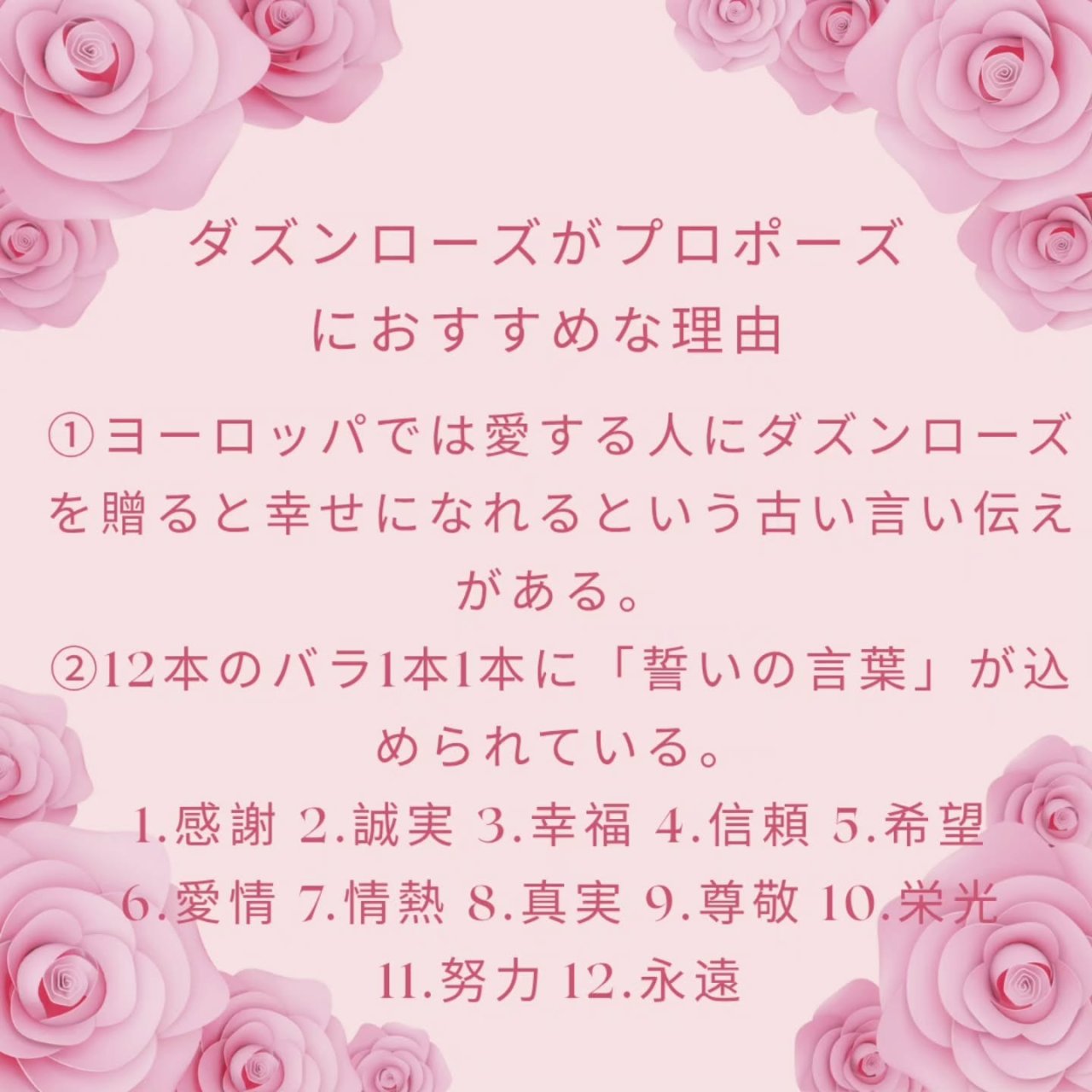 こんにちは☀バラが綺麗な季節ですね🌹今日は、ダズンローズについてのまとめをお送りします🌹12本のバラにはそれぞれ素敵な...