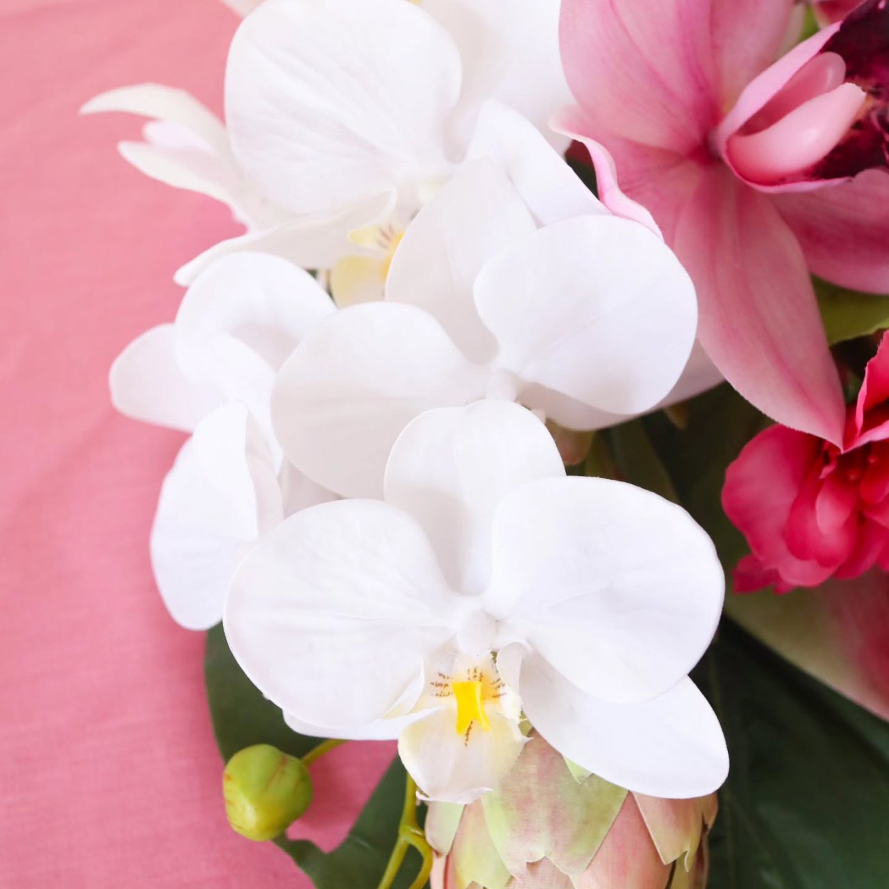 華やかなトロピカルフラワーをふんだんに用いたスワッグをお家に飾れば気持ちが明るくなりますね😉🩷