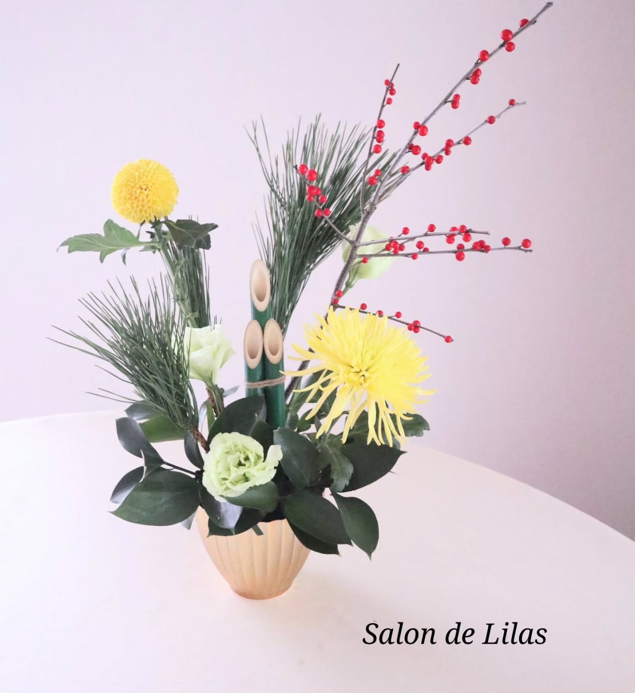縁起のよい花材を用いて、新しい1年を華やかで本格的なお正月アレンジを飾って迎えましょう🎶