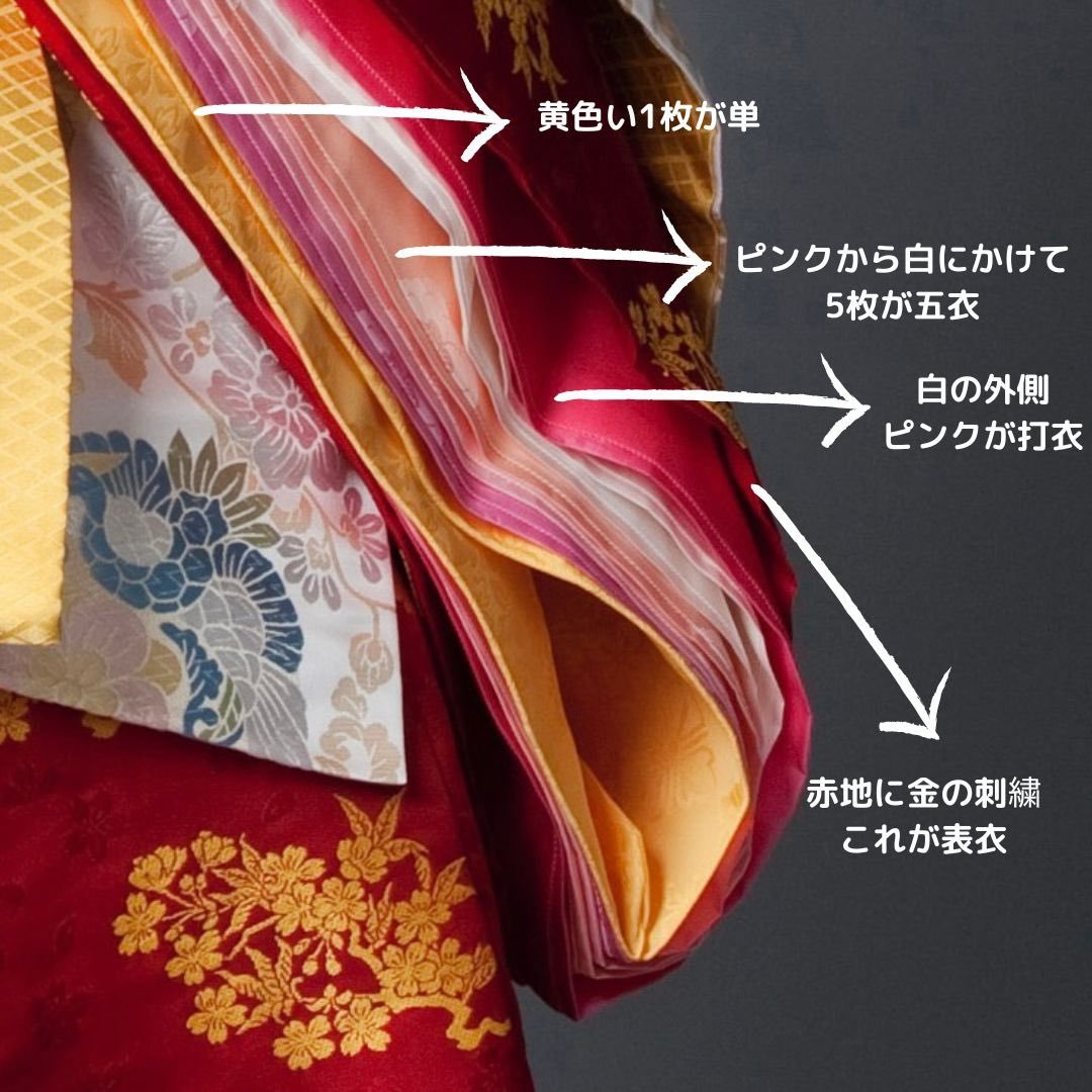 #十二単 #図解 #単 #五衣 #打衣 #表衣 #唐衣 #裳 #ひな祭り #ひなまつり #かぐや姫
