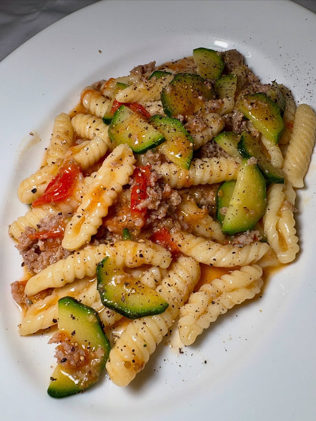 🍝✨【おすすめパスタ】✨🍝手打ちのカプンティ × 近江鴨のサルシッチャ🐤チェリートマト🍅とズッキーニ🥒のシンプルで奥深いソースがカ...