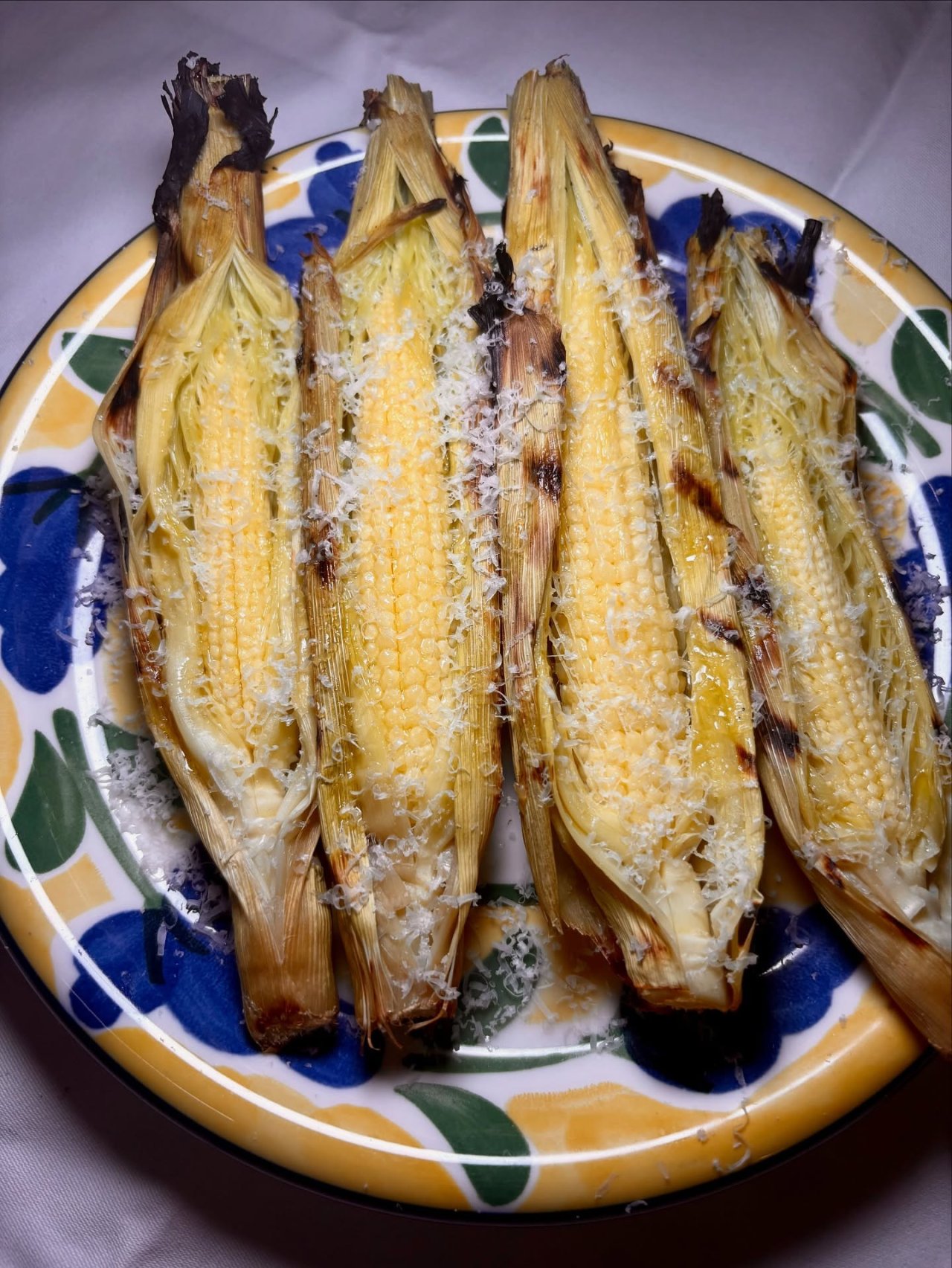 香ばしく炙った皮付きヤングコーンに、ふわりと削ったチーズをたっぷり✨