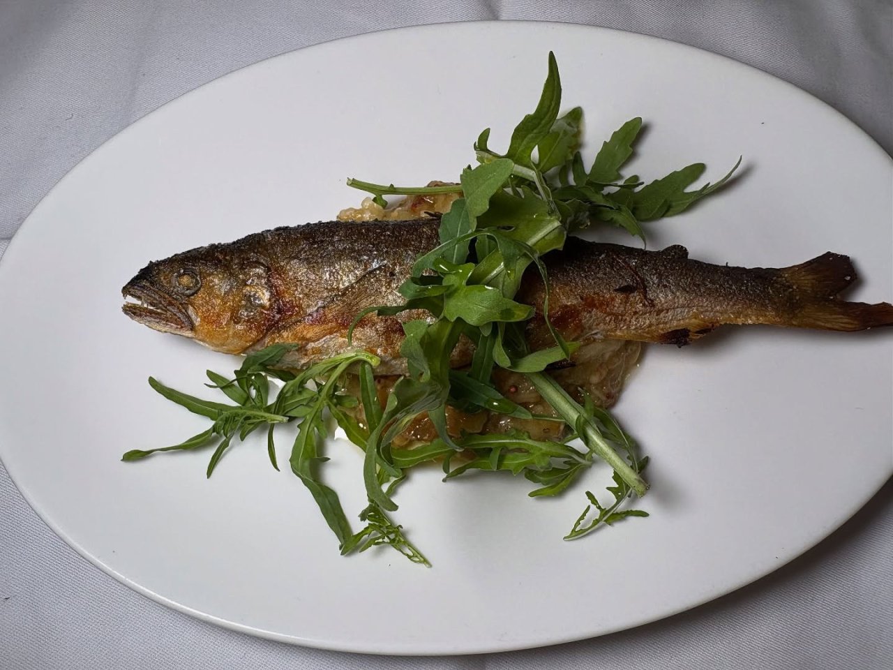 外はパリッと香ばしく、中はふっくらと火入れした鮎のコンフィ🐟