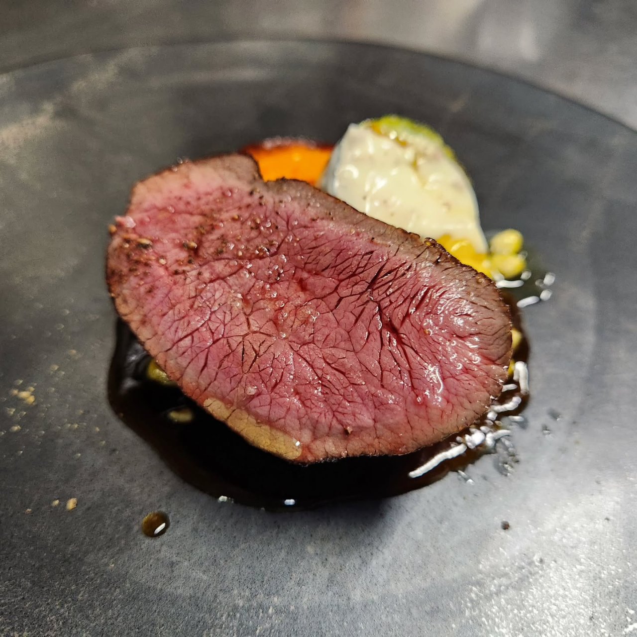 夏鹿☀個体の小さい雌の蝦夷鹿なのでとっても柔らかいです!炭火焼きからのマデラ酒のソース夏に食べる鹿も美味しいですよ🙆♀️...