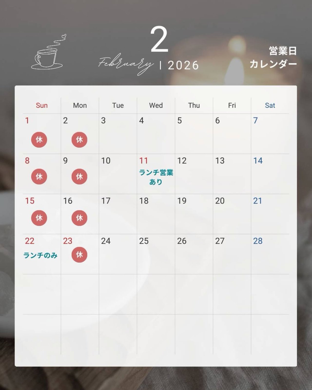 二月のカレンダー🗓️です。