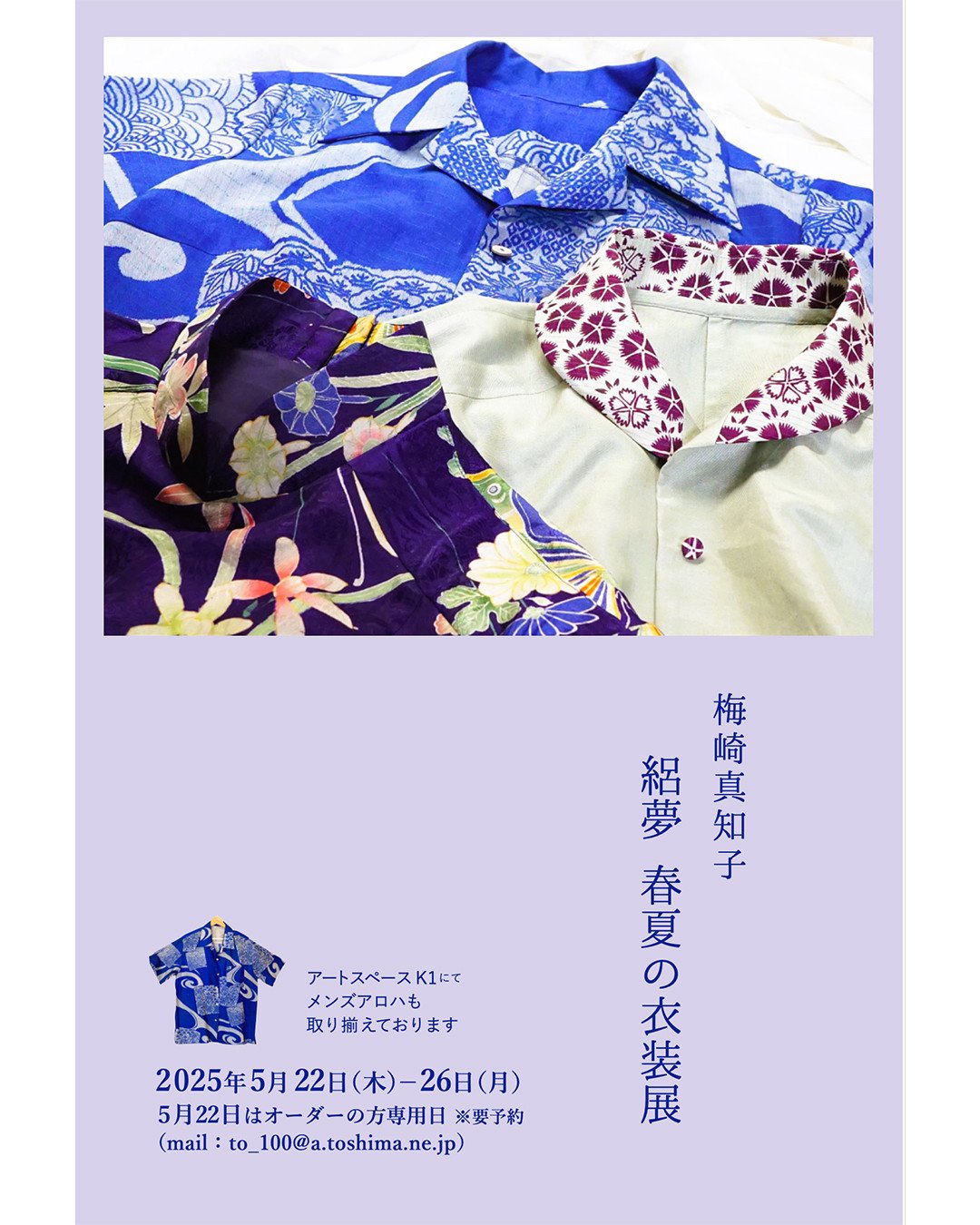 梅崎真知子絽夢 春夏の衣装展2025年5月22日(木)~26日(月)12:00~18:0022日はオーダーの方専用日(要予約)この夏、仕立て...