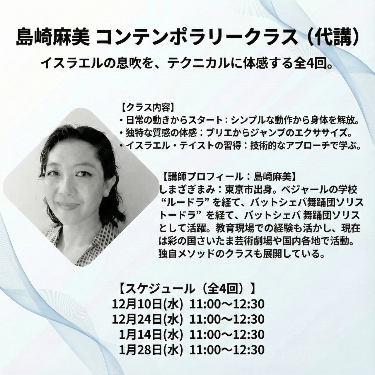 島崎麻美コンテンポラリークラス井田亜彩実 代講ワークショップ(全4回)来週からスタートします!今回は年齢制限なし、どなたでも...