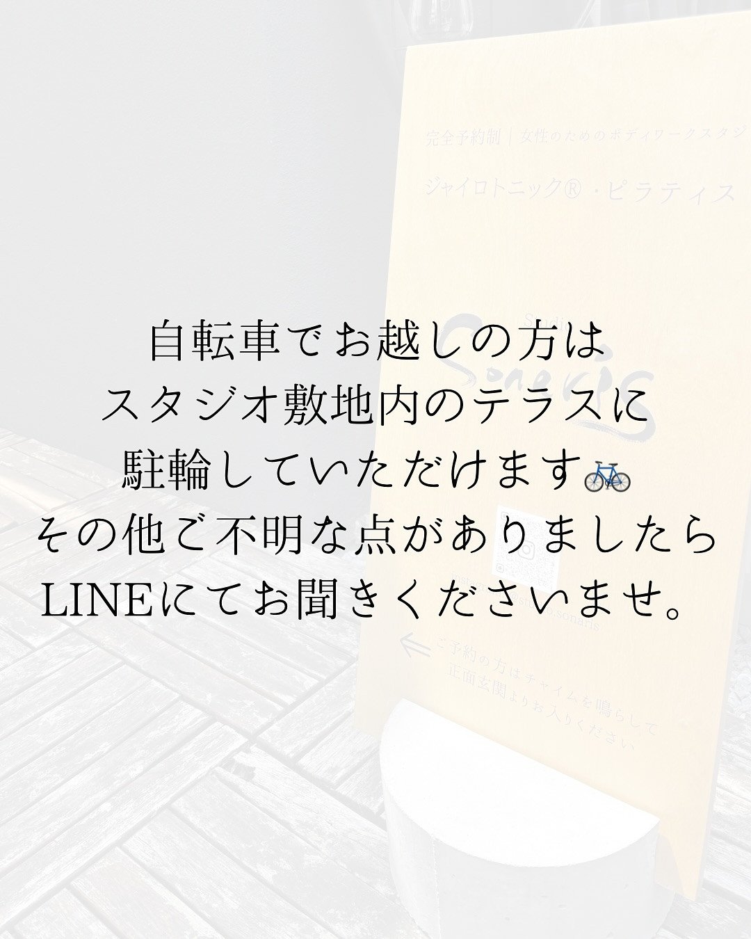 自転車でお越しのお客様へ🚲自転車は、スタジオ敷地内のテラスに停めていただけます。道路やエントランス通路でなく、奥まで運んで...