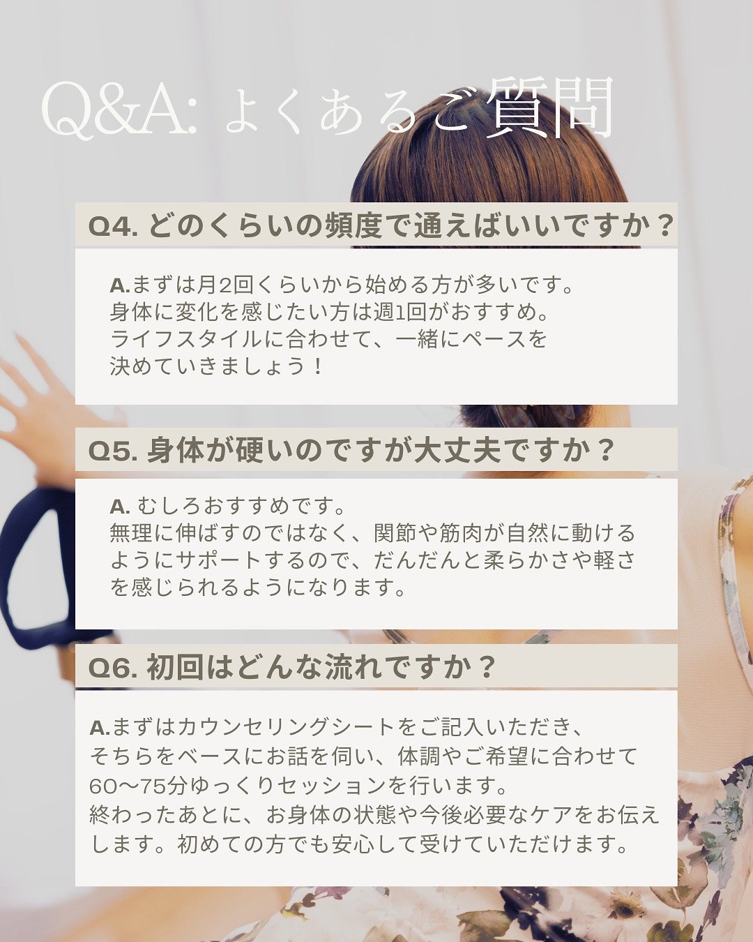 よくあるご質問🌿Q&Aをまとめてみました。他にも気になることやご不安な点がありましたら、お気軽にメッセージでお問い合わせくださ...