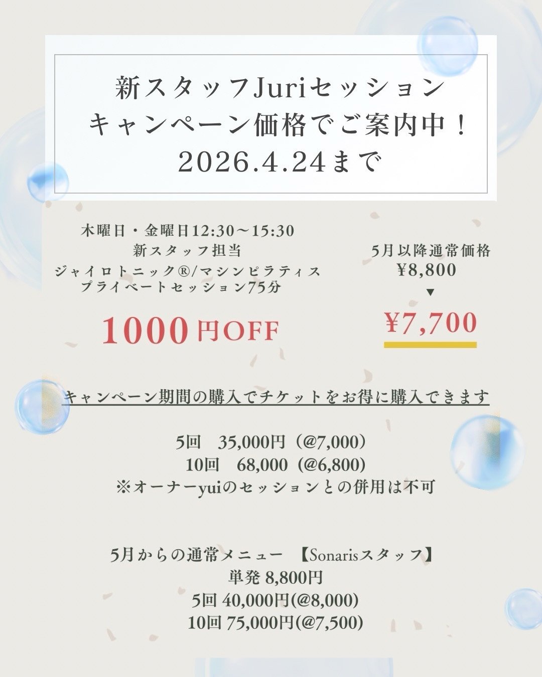 🌿スタッフ価格チケット販売のお知らせ🌿ご好評につき新スタッフ・Juriのキャンペーンセッションは4月24日までの延長が決定いたしま...