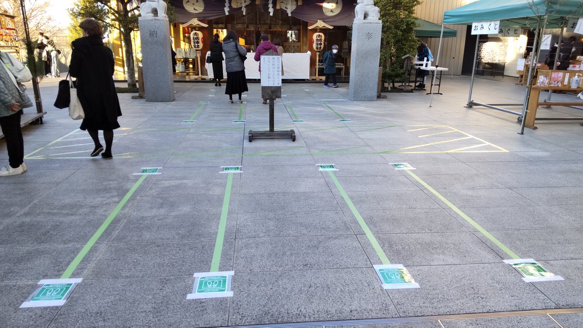 例大祭の後片付けの一環で、石畳を清掃しています。ご来社の方は足元にご注意ください。