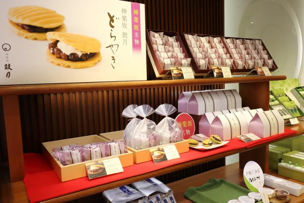 季節感を大切にした生菓子やご進物など、こだわりのお菓子をご用意しております。また神楽坂でしか手に入らない「神楽坂どらやき」や、東京では神楽坂だけの販売商品「千寿せんべいアイスクリーム」などもご賞味ください。