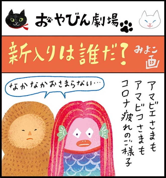 ちょっとお疲れのアマビエさんとアマビコさん。そこに現れた「疫病退散」の強力な助っ人とは!?