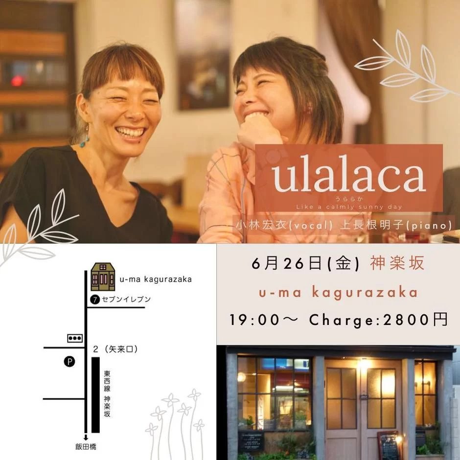 【6月26日のイベント情報】「ulalaca Jazz Live」主催:u-ma kagurazaka出演:ulalaca 上長根明子(Pf)、小林宏...