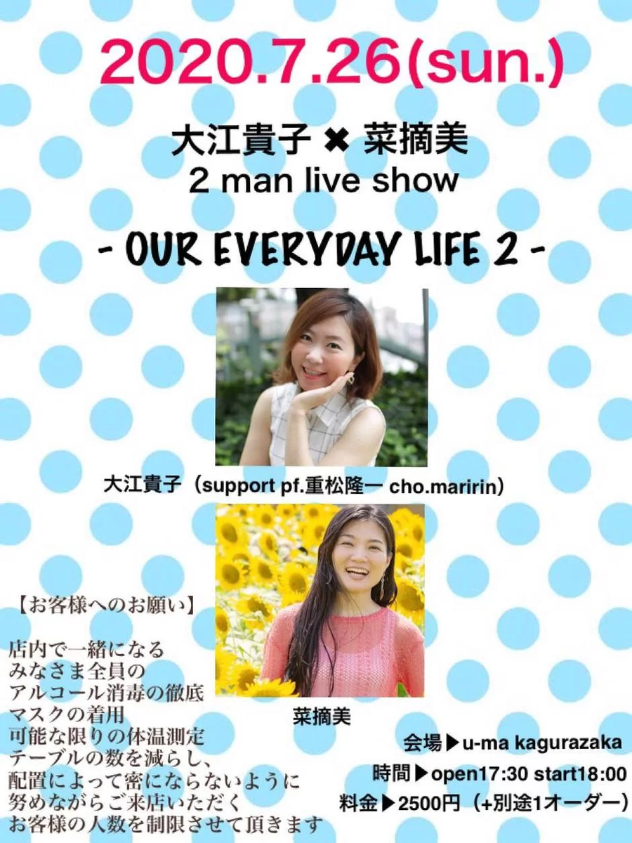 【7月26日のイベント紹介】「Pops Two men Live」主催:u-ma kagurazaka出演:菜摘美(Vo)、大江貴子(Vo)人種や国境...