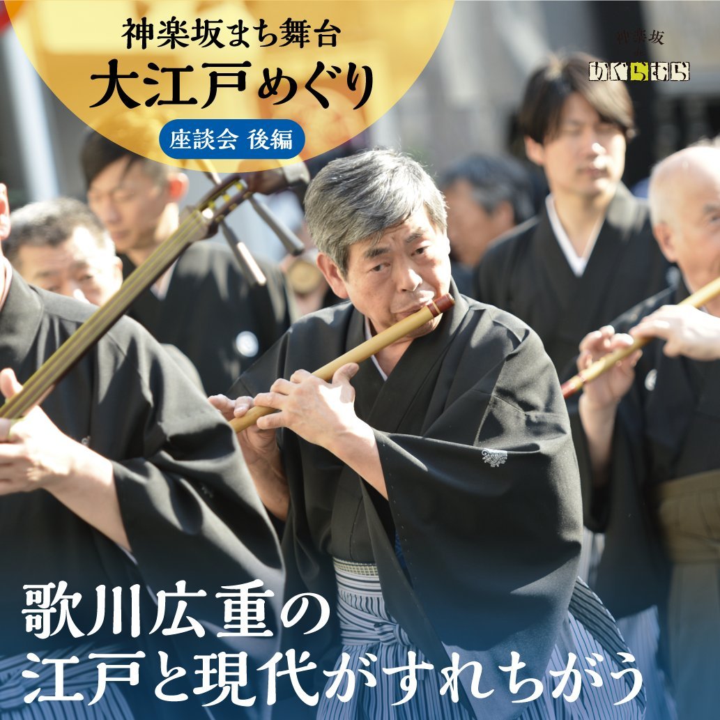 特集「神楽坂まち舞台・大江戸めぐり」座談会 後編歌川広重の江戸と現代がすれちがう前編は「伝統芸能の映像化とイベントの一回性...