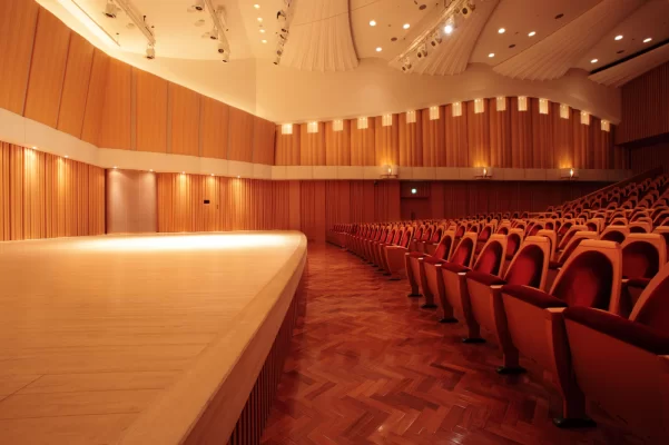 全体を特殊な「浮き構造」にし、周囲の騒音を遮断、客席位置の音響差が少なく残響特性に優れています。