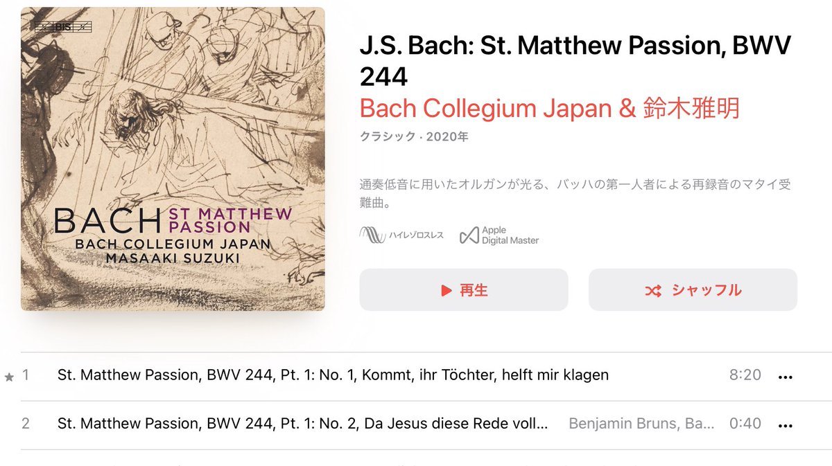 明日のライブ配信にご出演くださる、鈴木雅明さん指揮のマタイ受難曲を始め、バッハ・コレギウム・ジャパンの録音もハイレゾ配信が! 嬉しい!!