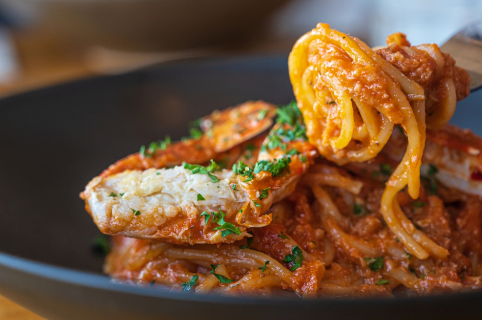 もちもちのパスタとソースがよく絡み、カニの身もたっぷり入った贅沢な一皿でした。
