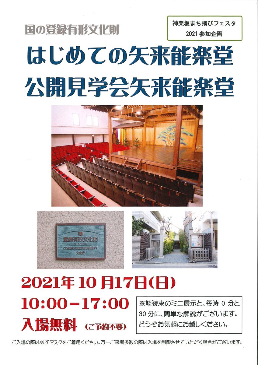 2021年神楽坂まち飛びフェスタ参加企画【はじめての矢来能楽堂公開見学会】を開催!2021年10月17日(日)10:00-17:00(入退場...