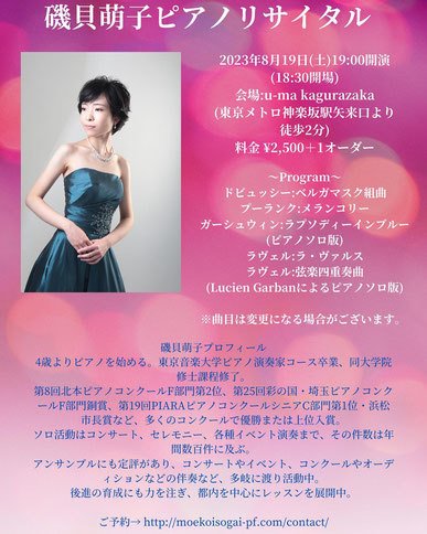 ピアノソロコンサート 磯貝萌子: Pf.