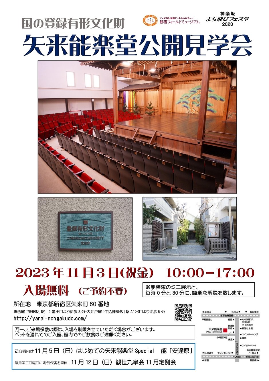 国の登録有形文化財である矢来能楽堂の無料見学会です。