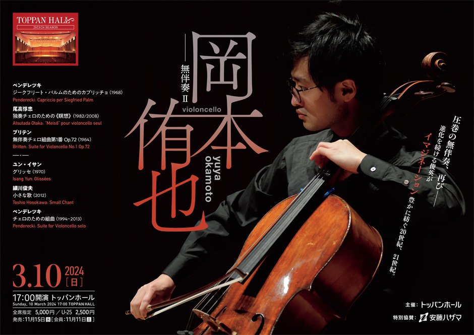 岡本侑也(チェロ)―無伴奏Ⅱ【残席わずか】