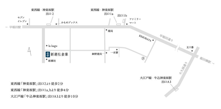| 住所 | 〒162-0805 東京都新宿区矢来町71 新潮社倉庫内 |