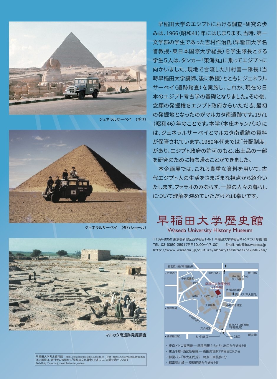 入館無料【早稲田大学歴史館】企画展 古代エジプトの生活 ~早大隊の発掘調査から辿る古代の暮らし