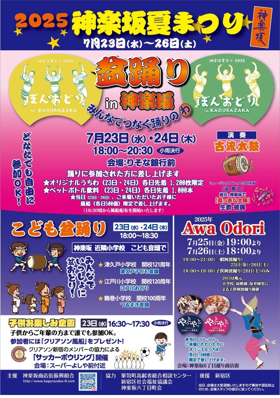 | 場所 | 7月23日・24日:詳細は記事参照 7月25日・26日:神楽坂6丁目通り商店街 |