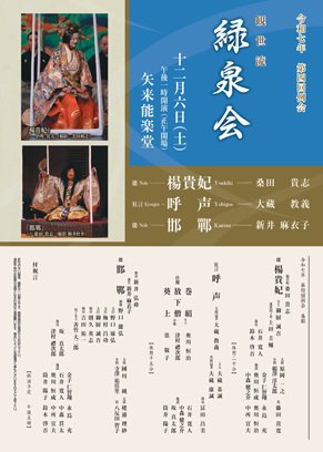 | お問い合わせ | 申込先:各出演能楽師または緑泉会まで 津村 禮次郎:TEL 042-386-2131,FAX 042-386-2132 墨 敬子:TEL&FAX 045-544-6787 坂 真太郎:TEL 03-3873-5404,FAX 03-3873-5635 中所 宜夫:TEL&FAX 042-550-4295 鈴木 啓吾:TEL&FAX 03-3269-7018 桑田 貴志:TEL&FAX 03-3643-0891 新井 麻衣子:TEL&FAX 04-2946-8389 緑泉会:TEL 042-386-2131 |
