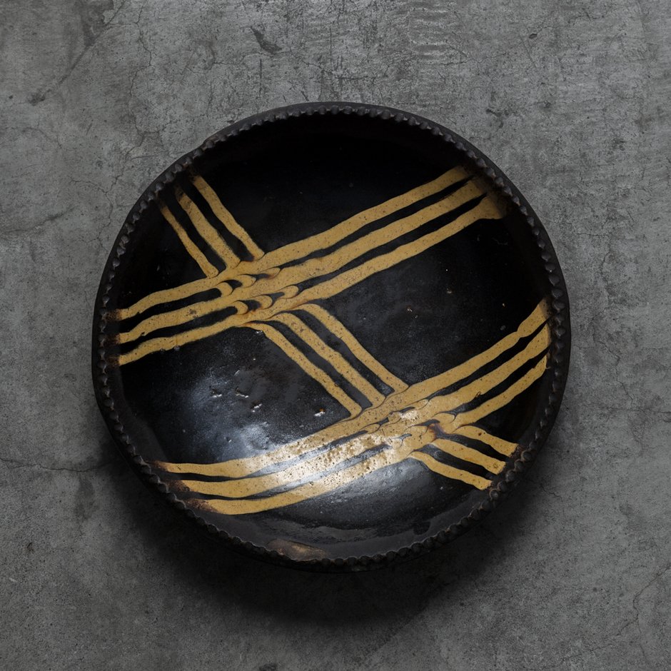 日本で「スリップウェア」というとおもに英国近世のやきものを指し、人物や動物文など鑑賞用の飾皿と、縞文はじめ抽象文の実用品(パイ皿)があります。彼地にさきがけ後者を美的に評価したのは日本人であり、代表はふたり、1920年代の柳宗悦と、1980年ごろの坂田和實でした。ことに骨董界における坂田さんの功績は大きく、(いまとなっては信じがたいけれど)スリップウェアが日本でほとんど売れなかったころから、こつこつと、抽象文の名品を日本に入れつづけました。今展は、坂田さんが請来したスリップウェア十数点ほか、欧州中世陶器や家具、コプト裂など西洋工芸を中心に、美術館 as it is の蔵品と古道具坂田由来の品々約60点を展観します(予約制)。