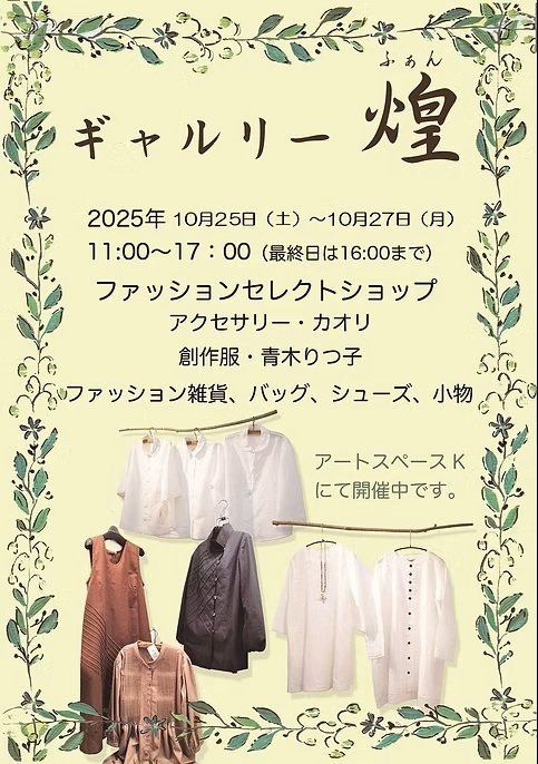 | 時間 | 11:00~17:00(最終日は16:00まで) |