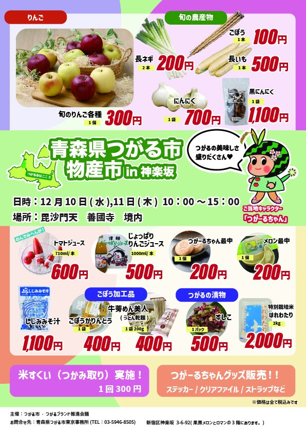 | お問い合わせ | つがる市東京事務所(TEL.03-5946-8505) |