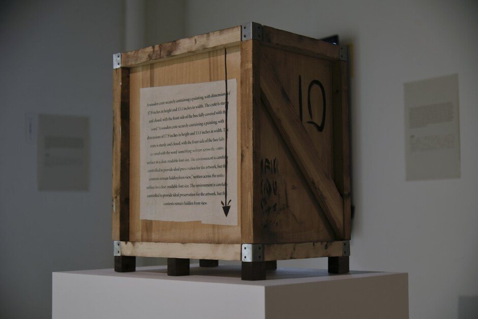 このシリーズにおいてクレートは、作品を守る容器である以上に、見えない内容物を制度的に成立させる装置でもある。運搬・保管・展示の痕跡をまとった箱は、作品が「どこから来たのか」という来歴を帯び、観客に “中身” よりも先に、その到着と管理の回路を読ませる。和田は、生成された像を実物に翻訳することで、デジタルの即時性と、物質化の遅さ・重さ・手続きの時間を衝突させ、作品とは何か/作者とはどこにいるのか/私たちは何を見ているのか、という問いを空間に立ち上げる。」