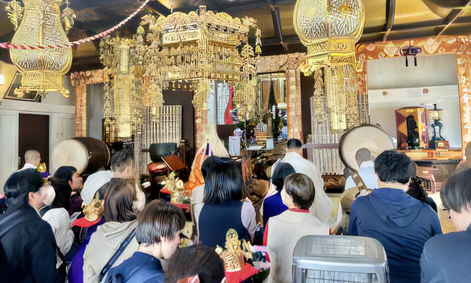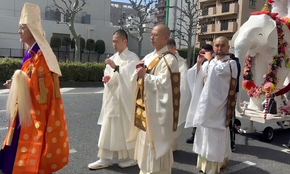 花まつりでは、雅楽の調べに包まれながら、白象の山車を先頭に、お稚児さんたちが色鮮やかな衣装をまとい、まちをゆっくりと練り歩く「天童稚児行列」を実施。行列の後は、お釈迦堂にて子どもたちの健やかな成長を願った「発育健康祈願」の法要が執り行われます。