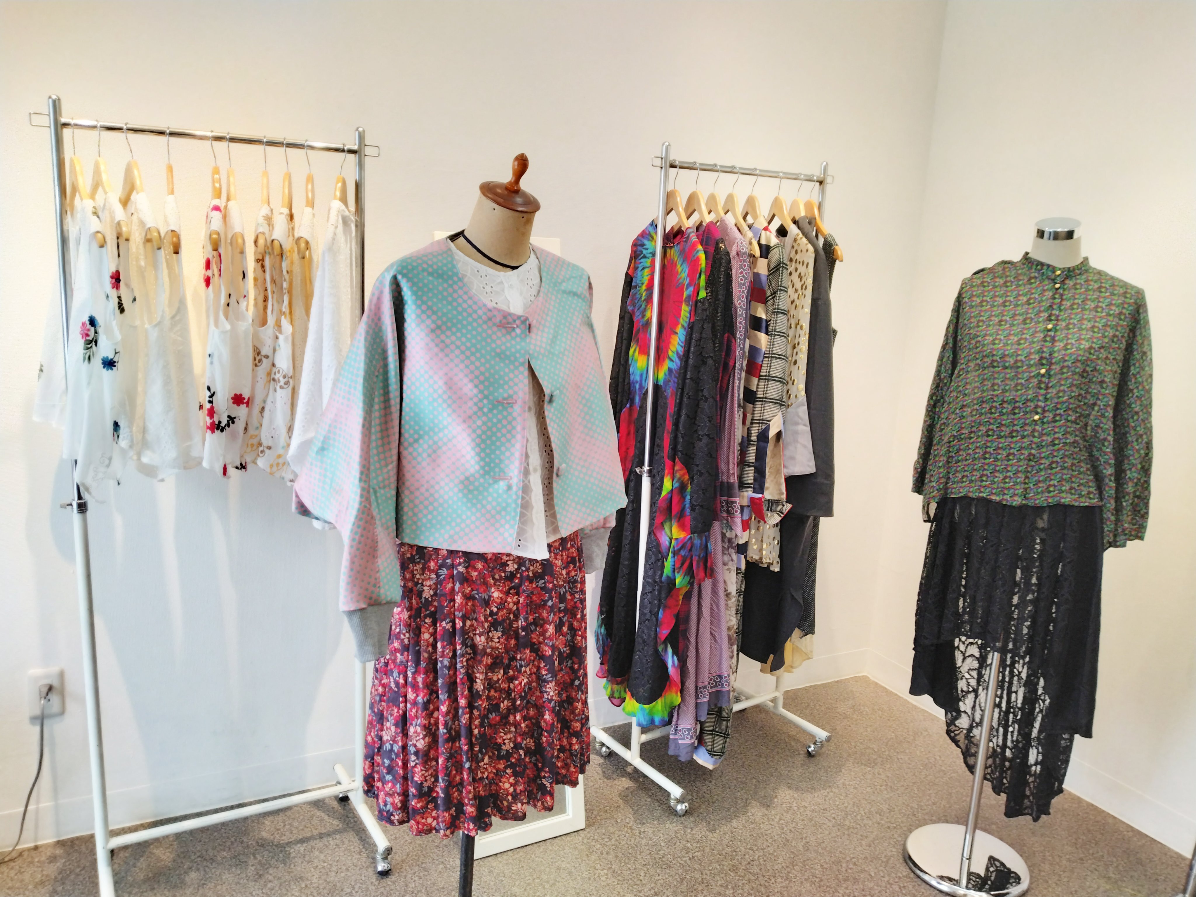 オフホワイトを基調とした空間はキャンパスのように洋服たちを引き立てます。