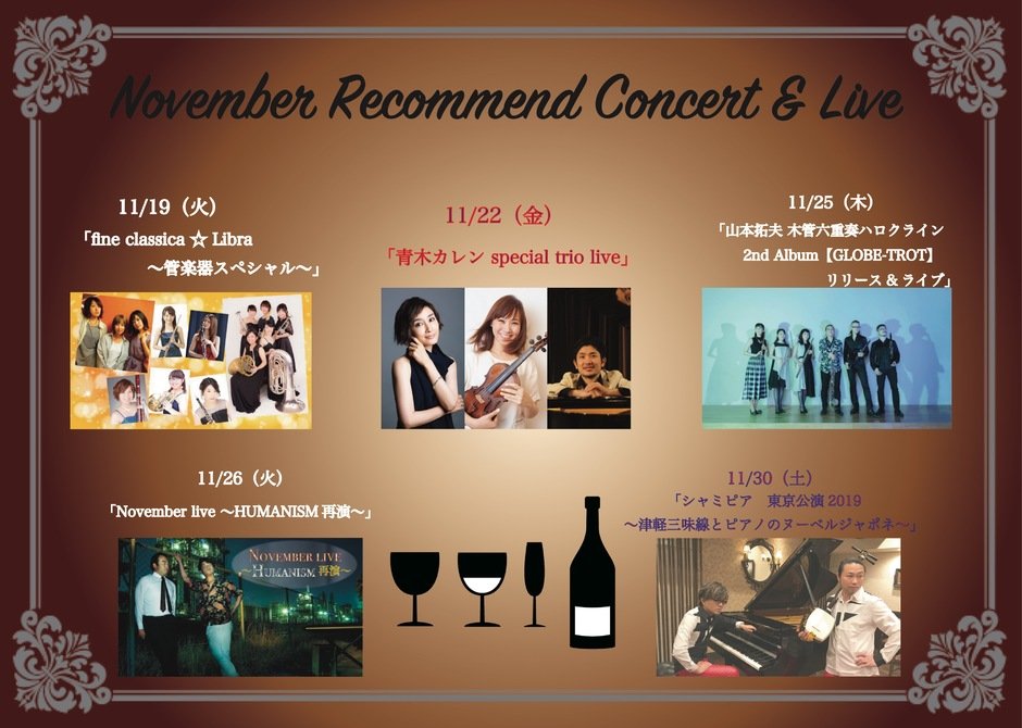 11月後半もTheGLEEでは様々なジャンルのコンサートを開催します♫