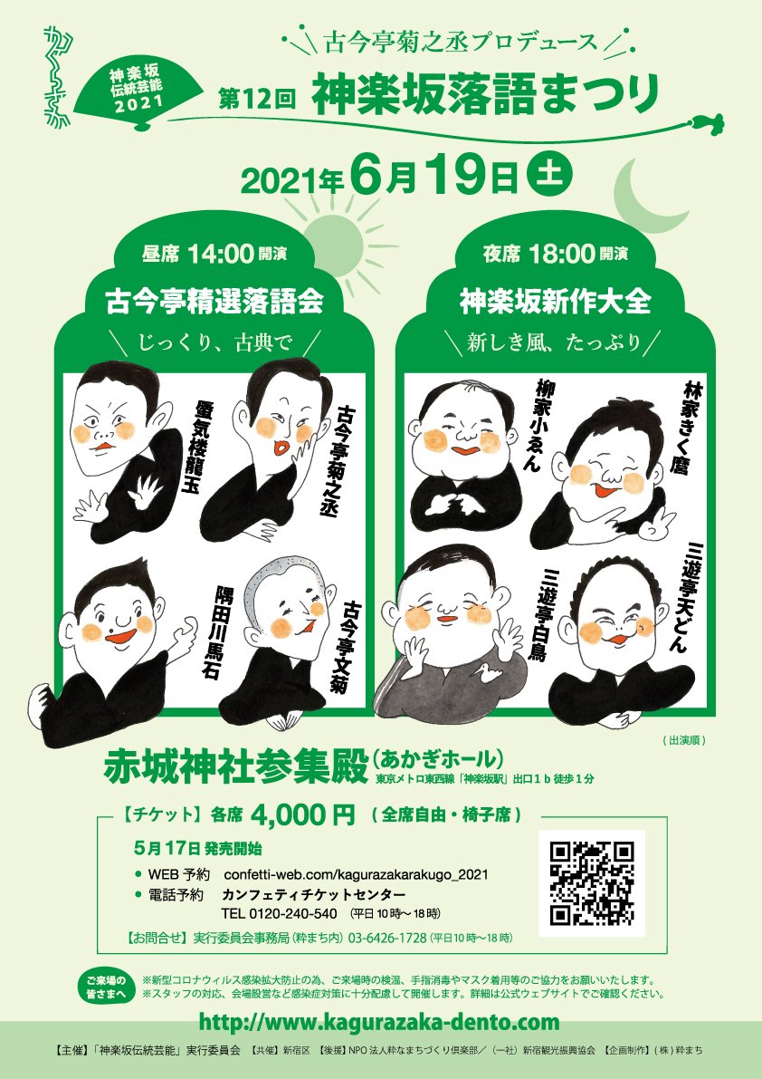 | 場所 | 赤城神社参集殿(あかぎホール) (新宿区赤城元町1-10) 東京メトロ東西線「神楽坂駅」出口1b 徒歩1分 都営大江戸線「牛込神楽坂駅」出口A3 徒歩8分 |