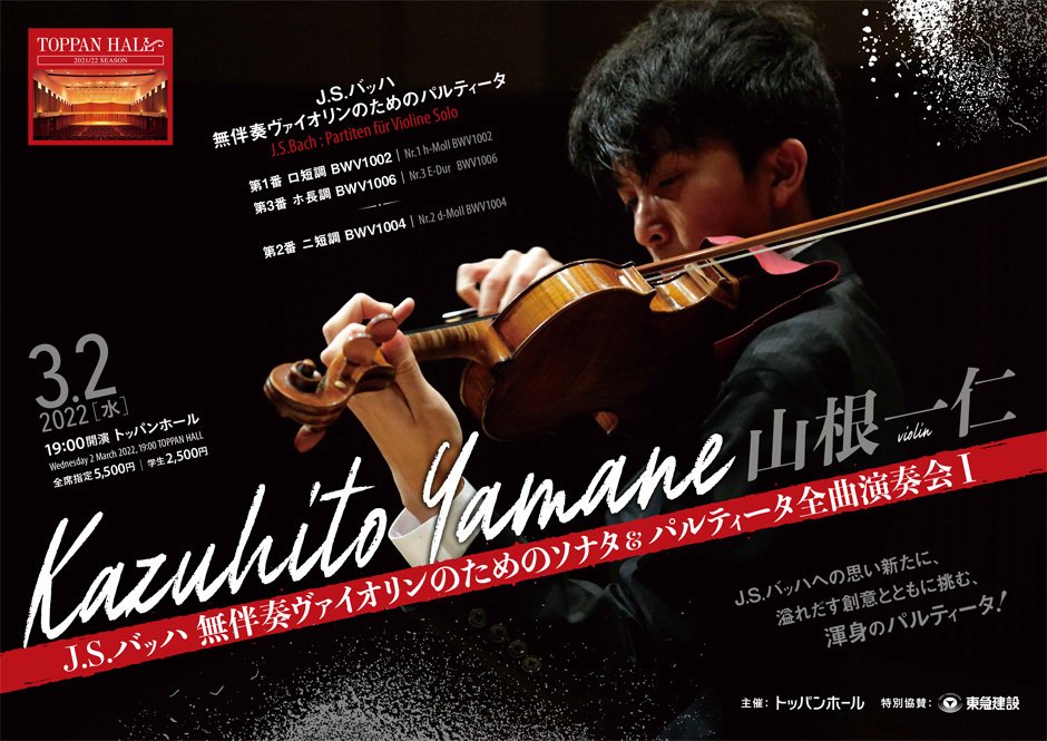 山根一仁(ヴァイオリン)J.S.バッハ 無伴奏ヴァイオリンのためのソナタ&パルティータ全曲演奏会 I