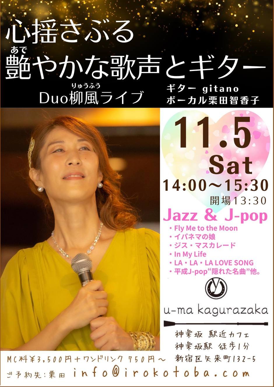 | お問い合わせ | Mail address: u.ma.kagurazaka@gmail.com Phone: 03-6873-6746 予約専用: 080-4120-7171 |