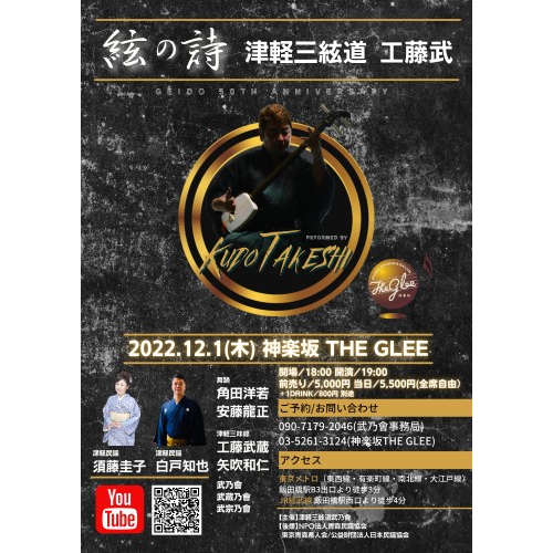 津軽三味線名人工藤武が神楽坂の夜に津軽の風を吹かせます。津軽三味線一筋50年の珠玉の芸は見逃し厳禁!