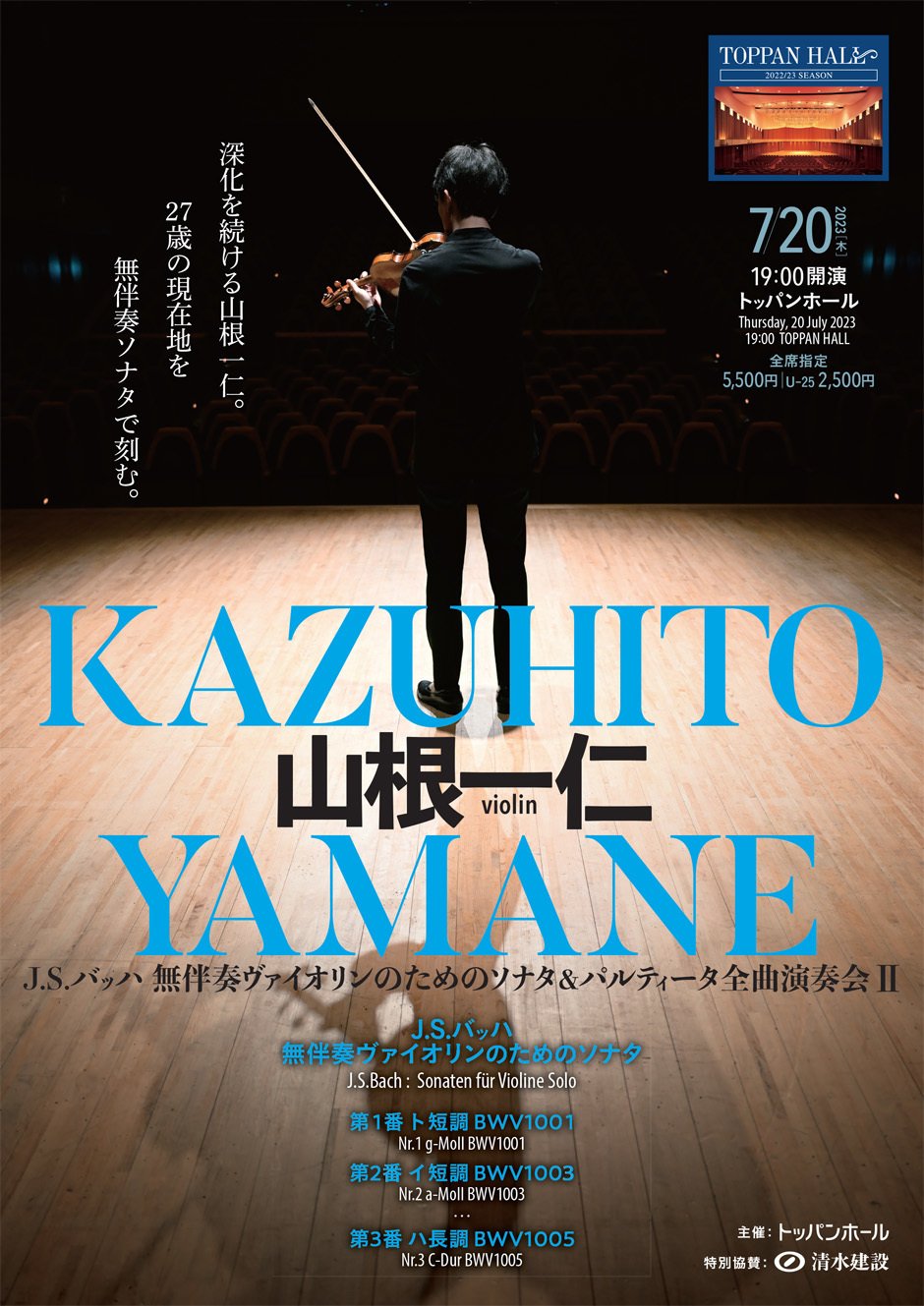 山根一仁(ヴァイオリン)J.S.バッハ 無伴奏ヴァイオリンのためのソナタ&パルティータ全曲演奏会Ⅱ