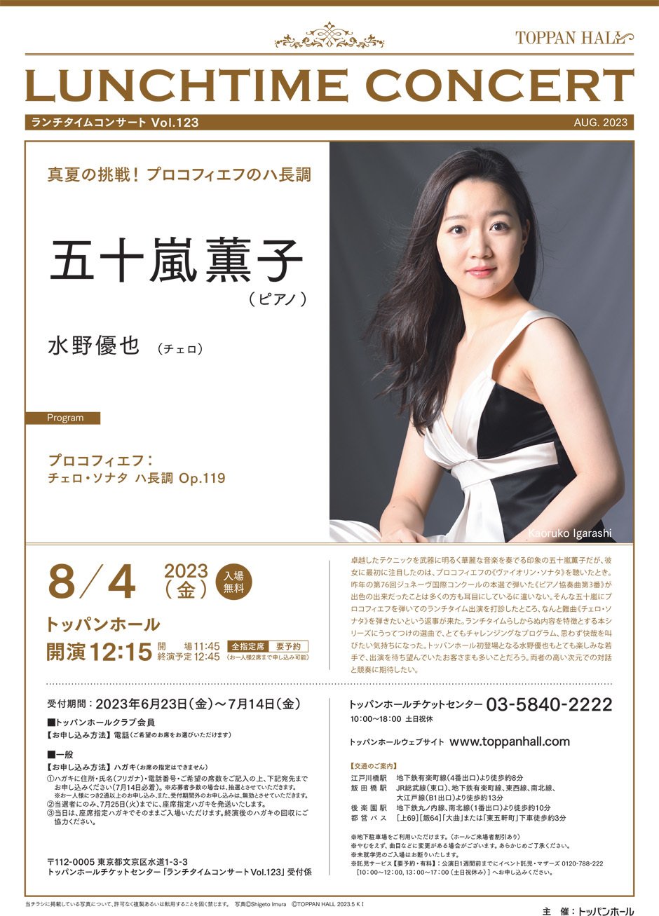 〈ランチタイムコンサート Vol.123〉五十嵐薫子(ピアノ)【入場無料/受付終了】